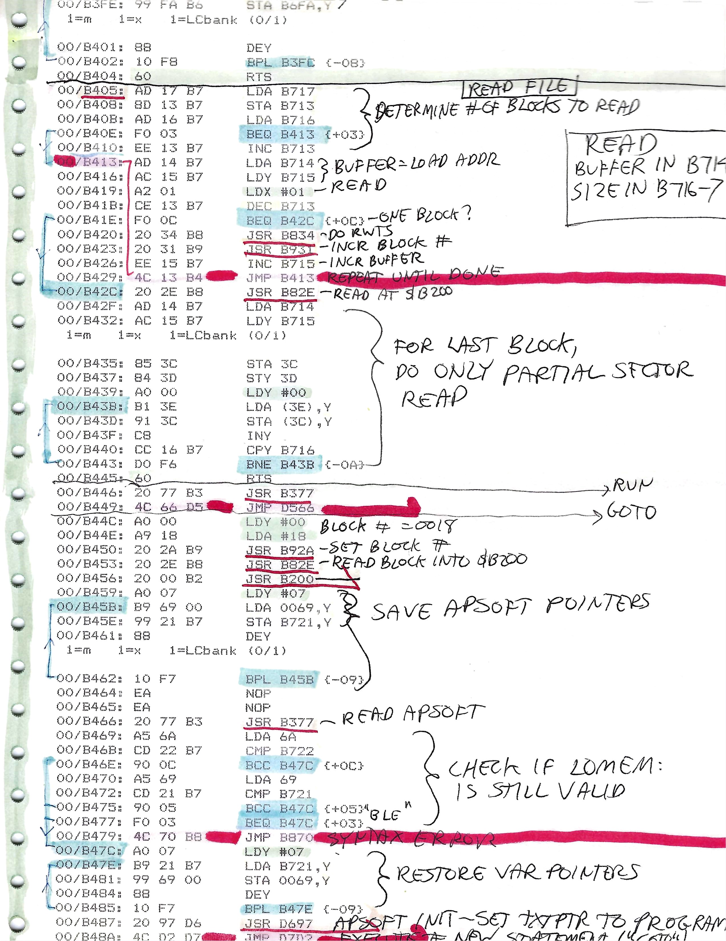 Personal note: Don Lancaster's "Tearing Into Machine Language Code" article, mentioned earlier, is how I learned to disassemble a large body of 6502 code back in the 1980s. I still have a printout from one of my efforts back in 1987 (scan 1, scan 2). Thanks, Don.